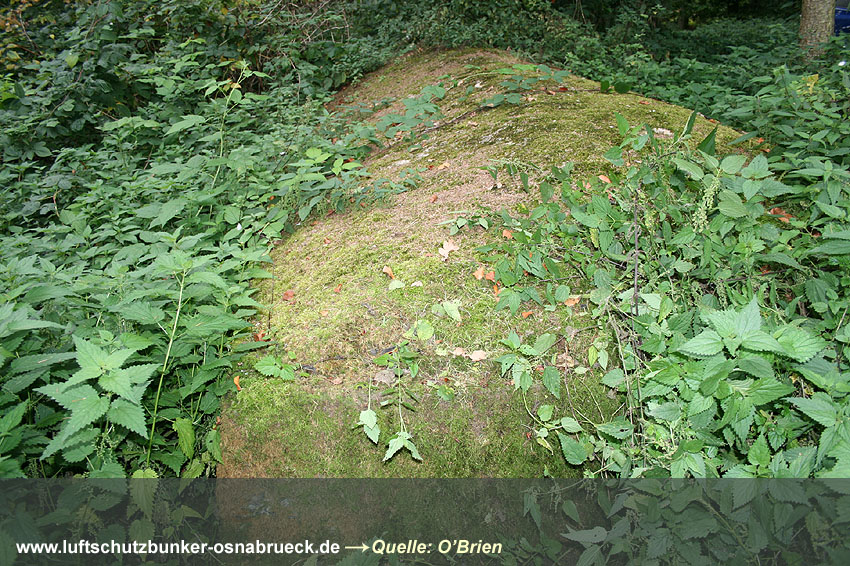 Bilder eines verschütteten Erdbunkers am Hunteburger Weg Ecke Ickerweg konnten eingefügt werden. Dieser privat errichtete Luftschutzraum befindet sich unweit östlich der ehemaligen Teuto-Metallwerke. Er diente den Bewohnern der anliegenden Häuser und des Gehöftes nördlich als Schutz. Der Erdbunker ist nicht mehr zugänglich und wurde wohl bald nach dem Krieg zugeschüttet. Es könnte auch sein, dass das Bauwerk gesprengt wurde. Aufgrund der Teuto-Metallwerke wird die Errichtung des Bunkers erfolgt sein, da um das Werk herum ständig mit Luftangriffen gerechnet wurde. Hier Dank an unsere Partnerseite www.untergrundosnabrueck.de. Brandwache nachgewiesen: Es handelt sich bei diesem Objekt um eine gemauerte Brandwache / Brandwachenstand / kurz BWS auf dem Gelände der alten Caprivikaserne. Der Unterstand befindet sich im südlichen Bereich des Geländes nahe der alten Offiziersunterkünfte und ist heute teilweise überbaut. Die Sichtscharten wurden nach dem Krieg offenbar durch die Briten versiegelt. Sehr selten wurden in Osnabrück Brandwachen errichtet - die nachgewiesenen Bauten nur im militärischen Bereich. Dies scheint die letzte existente Brandwache Osnabrücks zu sein. Hier Dank an unsere Partnerseite www.untergrundosnabrueck.de. |