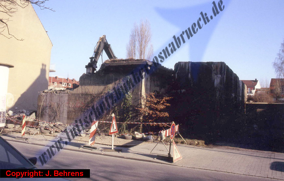 Zwei Aufnahmen von Anfang 1991 während der Abrissmaßnahmen des FLUKO-Bunkers an der Rudolfstraße Osnabrück konnten eingefügt werden. Vielen Dank an Herrn Behrens für die Bereitstellung der Bilder! Hier