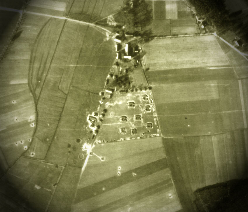 Aufnahme der Stellung von 1945. Die Anlage wird über Kleinbunker und eventuell einen Aufnahmebunker für den "Würzburg-Riesen" verfügt haben.