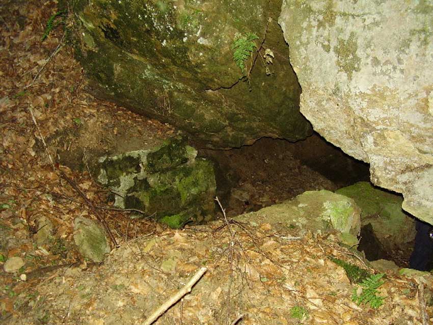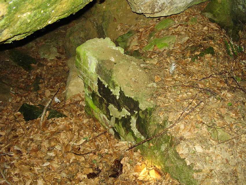Hagen a. Tw. = Hagen am Teutoburger Wald. Der Stollen ist etwa 7 Meter lang und grob in den Fels gehauen, der Eingang wurde wohl durch Naturstein und Klinker befestigt.