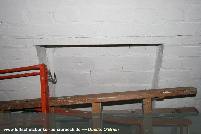 Einfacher, äußerlich nicht sichtbar verbunkerter LS-Keller im Stadtteil Wüste in Osnabrück (in Tabelle nicht aufgelistet). Interessant sind die Steigeisen am Notausstieg und die Türen aus Massivholz. Erhalten
